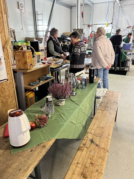 Es wurden in der Mosterei Tische und Bänke aufgestellt und mit „Apfeldeko“ versehen. Die VorstandskollegInnen hatten vielerlei Apfelkuchen gebacken. Blechkuchen, runde Kuchen, gedeckter Apfelkuchen, Muffins, Apfelbrot und vieles mehr.